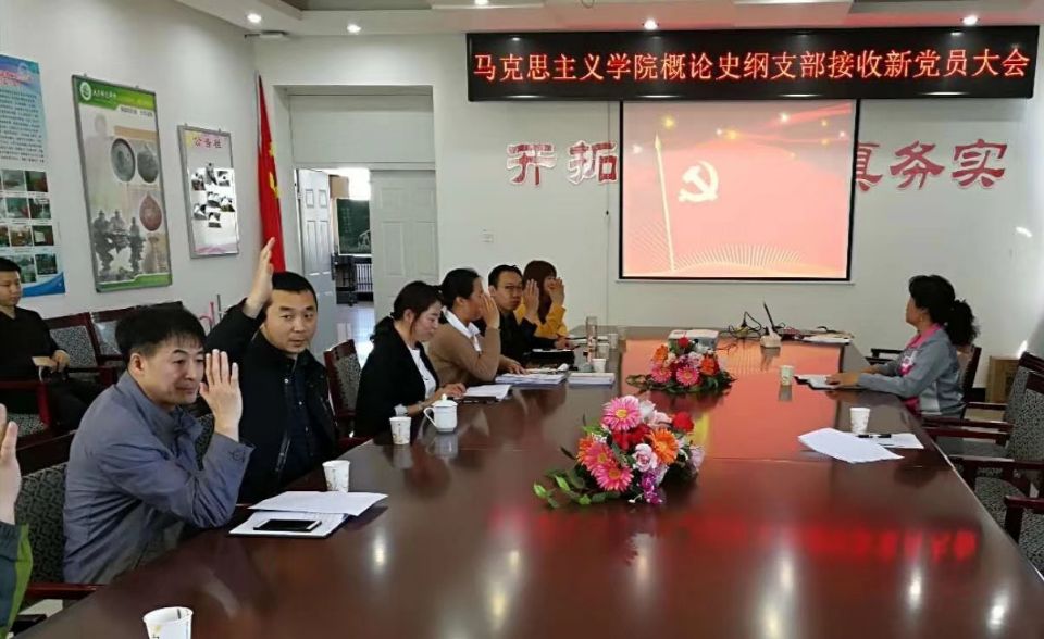 概论史纲教工党支部于2019年5月22日13:30分在永利yl23411319会议室召开了接收新党员大会,大会由支部书记邵红侠主持。