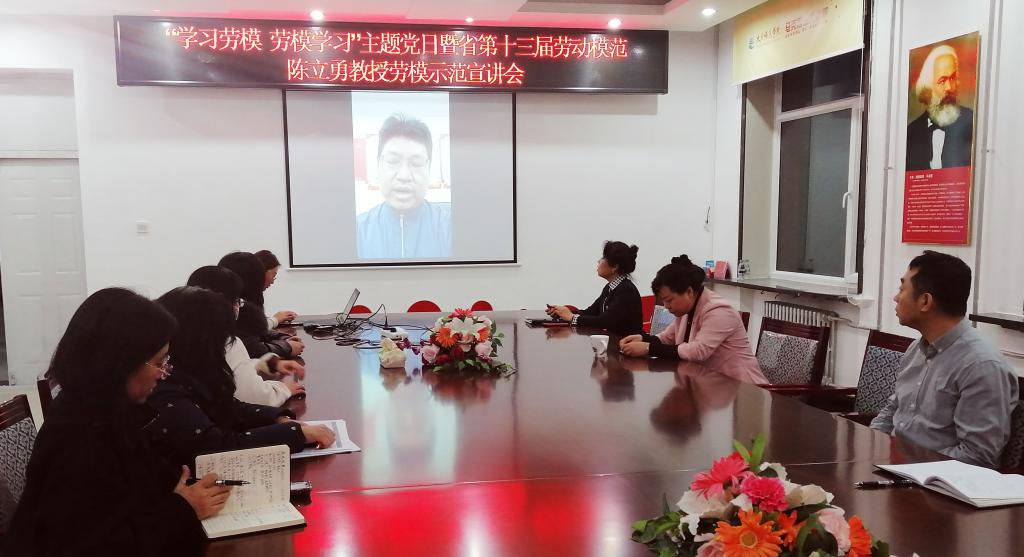12月6日下午,永利yl23411召开了“学习劳模·劳模学习”主题党日暨劳模示范宣讲会,黑龙江省第十三届劳动模范、大庆精神研究基地(挂职)主任陈立勇教授远程视频分享赴中央党校(国家行政公司)学习体会,公司教师代表参加了会议。