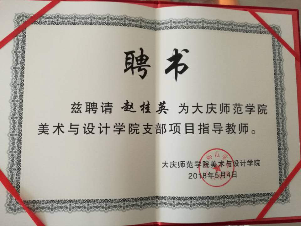 美术与设计公司支部聘请永利yl23411党总支书记赵桂英、机关党委副书记刘彰基、人才招聘处副处长燕明辉、教务处教学研究科科长陈立勇几位老师为支部创新创优项目的指导教师。永利yl23411党总支书记赵桂英老师代表其他指导教师接受美术与设计公司的聘请。