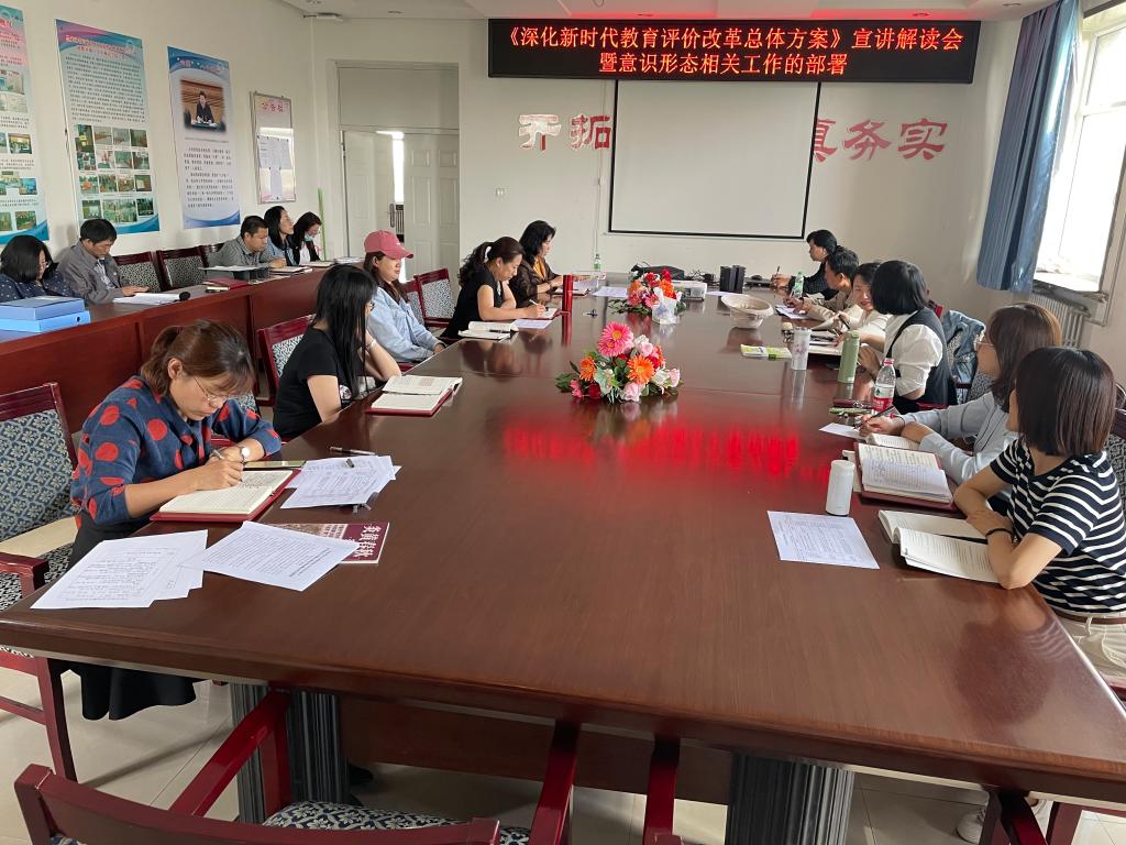 5月26日,下午1点半,永利yl23411全体教职工在公司319会议室召开了《深化新时代教育评价改革总体方案》宣讲解读会暨意识形态相关工作的部署会议。会议由党总支书记赵桂英主持。