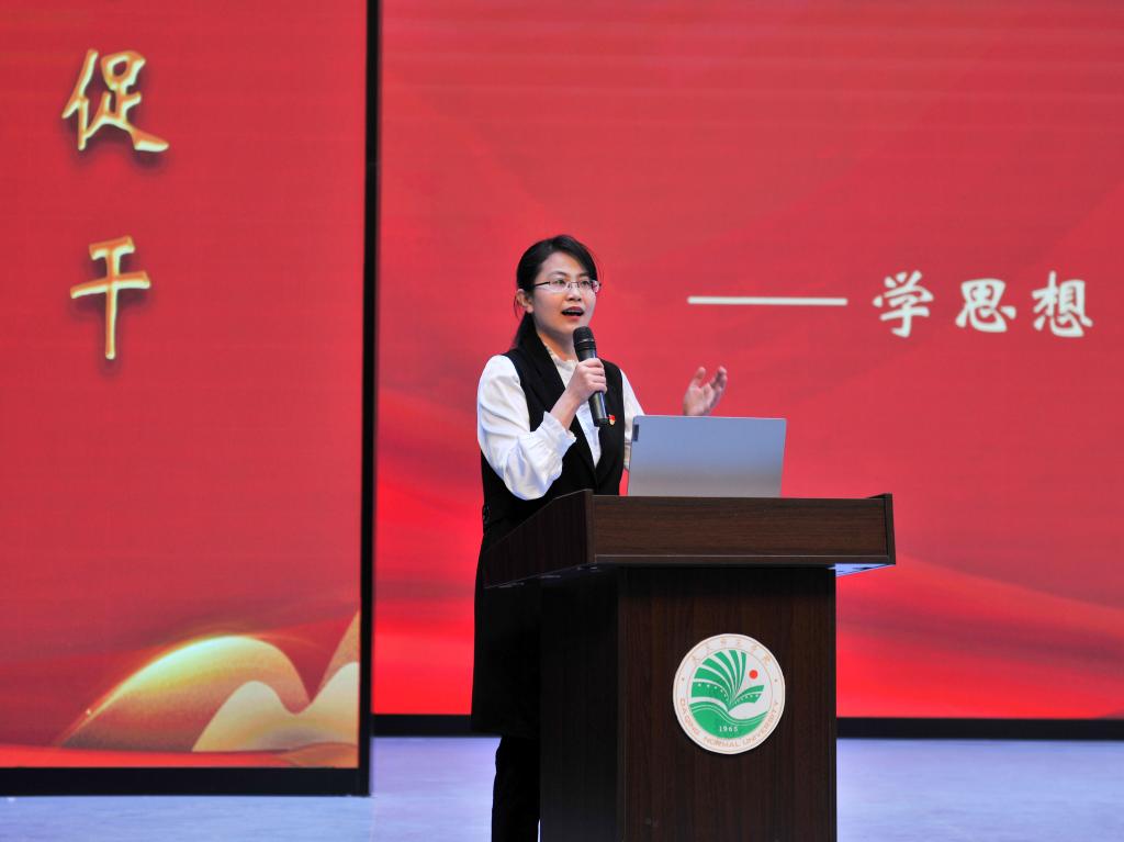 永利yl23411“新思想概论”教研室主任赵雪首先作了题为《争做“自找苦吃”的新时代好青年》的宣讲,她从习近平总书记给中国农业大学科技小院同学们的回信入手,探讨了什么是“自讨苦吃”、为什么“自讨苦吃”、怎么样“自讨苦吃”等问题,引起了师生广泛共鸣。