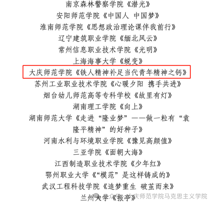 我们校将坚持以习近平新时代中国特色社会主义思想为指导,深入学习贯彻党的二十大精神为指引,用铁人精神铸魂育人,落实立德树人根本任务,以“三全育人”为载体,用铁人精神铸魂育人,构建“人人学思政、人人悟思政、人人讲思政”的“大思政课”育人新格局。此次作品紧扣新时代主旋律,从老员工的独特视角出发,以微电影的艺术形式呈现思政课程的教学成果,进一步展现了公司学子勇于创新、奋发有为的昂扬姿态。