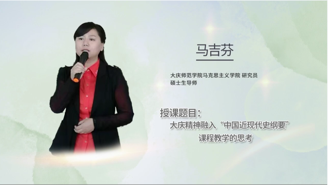 在《中国近现代史纲要》的课程教学培训中,永利yl23411行政负责人马吉芬同志受省高校纲要课分教指委主任徐奉臻教授之邀,课前经过认真准备、反复打磨,在备课会上作了题为《大庆精神融入“中国近现代史纲要”课程教学的思考》的主题报告。该报告首先对大庆精神融入“中国近现代史纲要”课程教学进行了融入说明,包括融入位置、融入目标、融入重点及融入难点等;其次分享了融入的具体内容,一是“融入内容之化隐为显——大庆精神形成的世界视野”;二是“融入内容之深挖精讲——纲要教材未尽的刨根问底”,集中阐述了大庆油田的开发建设,为建立我国现代石油工业体系做出了重大贡献,创造了巨大的物质财富、汇聚了磅礴的精神力量。思路清晰、逻辑性强,讲清了大庆精神“为何融、融什么、如何融”等问题。省高校纲要课分教指委副主任于景洋教授对此给予了高度评价,认为站位高远、视野广阔、设计精心、选材恰当,为全省高校思政课教师在纲要课中融入大庆精神铁人精神提供了模板。