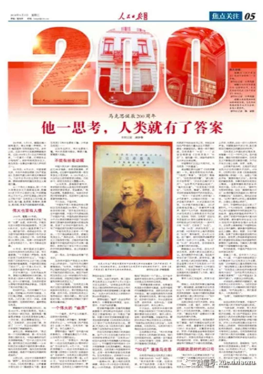 马克思逝世后,恩格斯说“当代最伟大的思想家停止思想了”。照此说法,200年前的5月5日,“当代最伟大的思想家开始思想了”。