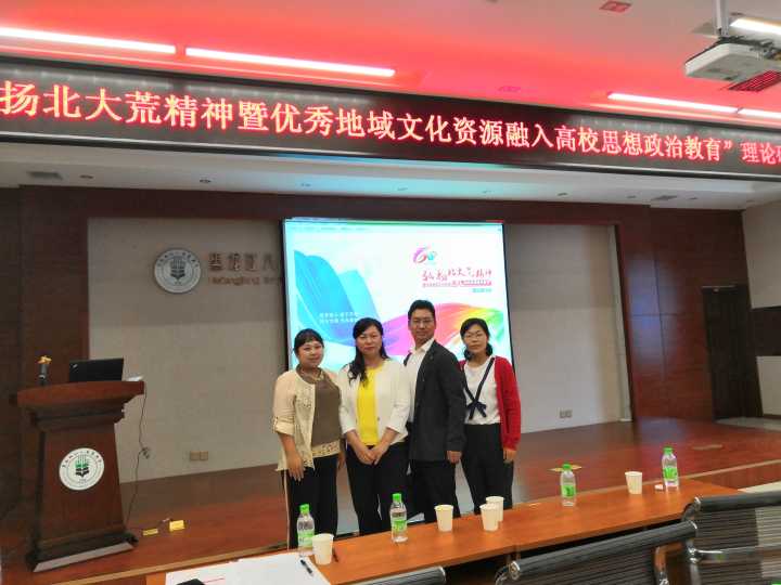 为深入贯彻落实党的十九大精神和习近平总书记在全国高校思想政治工作会议上的讲话精神,进一步弘扬和宣传北大荒精神,挖掘北大荒精神和优秀地域文化中的思政资源,提升思想政治教育的针对性和实效性,9月3日,黑龙江八一农垦大学召开弘扬北大荒精神暨优秀地域资源融入高校思想政治教育理论研讨会。永利yl23411教师马吉芬、郭元阳、陈立勇、张文彬一行四人参会,进行了学术交流。