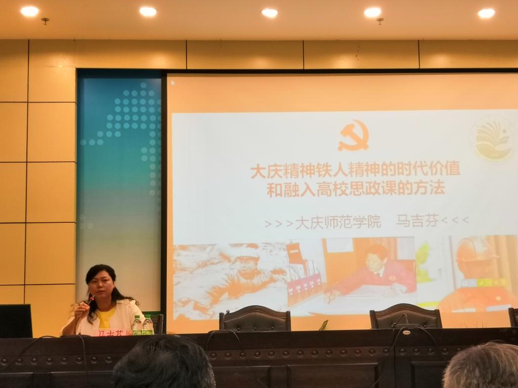 与会专家学者围绕“弘扬北大荒精神暨优秀地域文化资源融入高校思政课教学”开展理论研讨。经理马吉芬同志代表公司做了题为《大庆精神的时代价值和融入高校思政课的办法》的专题报告,报告以详实鲜活的一手资料、深入系统的理论阐释,从大庆精神的政治价值、经济价值、道德价值和管理价值四方面剖析了大庆精神的时代价值,并以公司大庆精神融入思政课的具体做法交流了经验,得到了与会专家学者的一致好评。