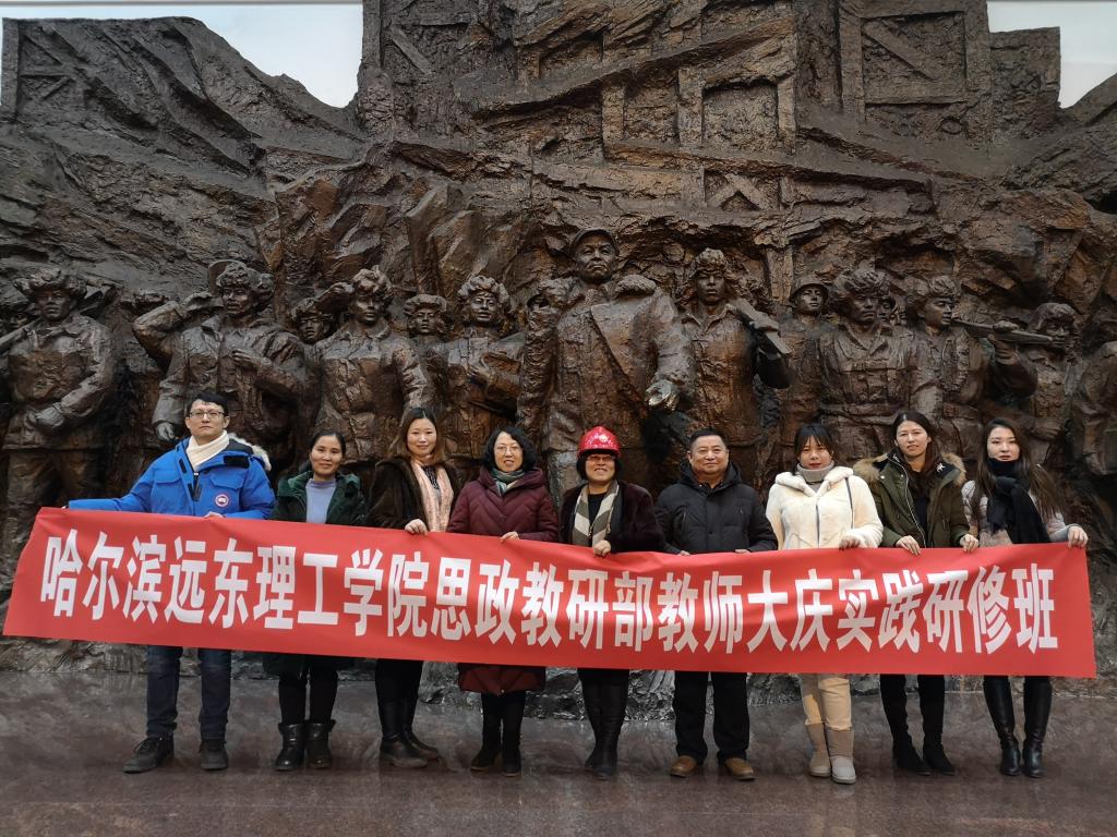 1月8日,全国高校思想政治理论课教师研修基地迎来了2019年第一个实践研修班——哈尔滨远东理工公司思政教研部教师大庆实践研修班,由该公司党委书记陈英云带队,共13名教师,永利yl23411大庆精神铁人精神研究与应用领导小组办公室主任李华,永利yl23411经理马吉芬全程陪同。