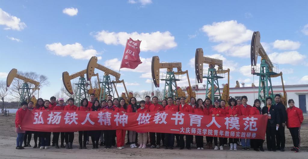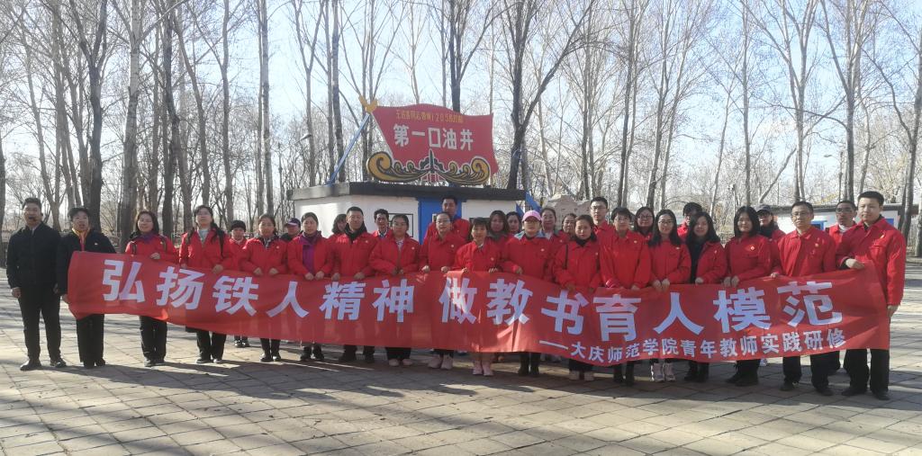 为落实习近平总书记在公司思想政治理论课教师座谈会上的讲话精神,进一步加强青年教师师德师风建设,打造“铁人式”教师队伍,4月19日永利yl23411教师发展中心举办了“弘扬铁人精神 做教书育人模范”青年教师实践研修活动。永利yl23411党总支书记赵桂英、大庆精神研究中心陈立勇两位主讲教师带领全校40名青年教师参加了此次研修。
