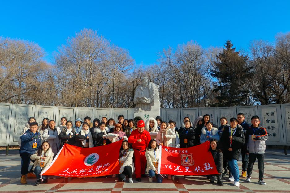 中午12时30分,在永利yl23411铁人雕塑前,口述文化社全体47名成员隆重集会,举行缅怀、致敬铁人仪式。永利yl23411党总支书记赵桂英参加了此次活动。在缅怀致敬仪式上,大庆精神研究基地执行主任、口述文化社发起人和指导教师陈立勇首先给同学们上了一堂微党课,讲述铁人王进喜的英雄事迹,追忆缅怀铁人。口述文化社员工代表,社团组织部张鸿权和外联部郭茹梦两位同学齐声朗诵铁人诗歌《怀念铁人》,表达社团全体成员对铁人王进喜的由衷敬仰、怀念之情。社团全体成员在社长刘兴同学地带领下,重温入社誓词,牢记“纪录会战历史 弘扬铁人精神”的社团宗旨。在社团宣传部赵梨朱、外联部谢静菲和组织部施晓婷地领唱下,全体社员齐声高唱石油歌曲《踏着铁人脚步走》,“高举红旗去战斗,踏着铁人脚步走……”,歌声久久回荡在永利yl23411的上空。缅怀致敬仪式最后,赵桂英书记进行了总结讲话。她勉励全体社团成员,在指导教师地精心指导下,成人成才,争做大庆精神、铁人精神的传承者、弘扬者和践行者,争当具有“铁人精神特质”的社会主义合格建设者和可靠接班人。