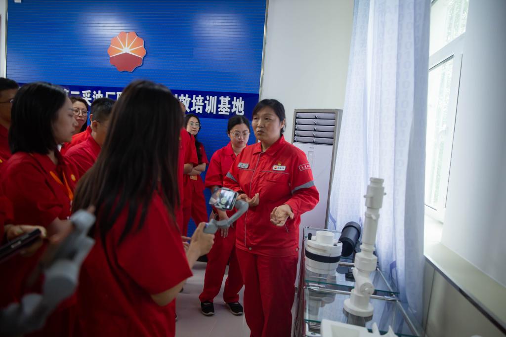 参训教师围绕着大庆油田发现之旅、踏着铁人脚步走、大庆油田科技创新之旅等主题,实地考察了松基三井、铁人一口井、1205钻井队、铁人王进喜纪念馆、勘探开发研究院“三超”文化展示厅和岩心馆、刘丽工作室等地。通过聆听不同角度、不同侧面的现场教学,使全体教师了解了大庆精神(铁人精神)的形成发展与核心要义;参训教师与基地教师通过角色扮演完美呈现了铁人一口井完钻祝捷大会的情景,坚定了大家进一步传承红色基因、赓续中国共产党人的精神血脉的信心,并表示一定要将大庆精神(铁人精神)内蕴的鲜活故事融入今后的思政课教学中,为培养担当民族复兴大任的时代新人助力塑魂。