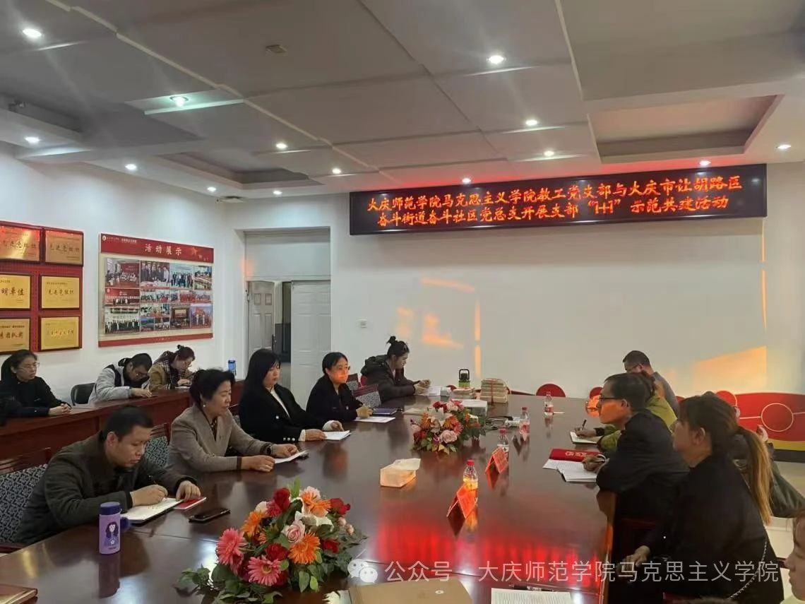 为加强高校基层党组织建设,增强党组织的创造力、凝聚力和战斗力、推动党建工作创新发展。11月13日下午,永利yl23411教工党支部与大庆市让胡路区奋斗街道奋斗社区党总支开展支部“1+1”示范共建活动。让胡路奋斗社区党工委副书记董占山、社区副主任李丹丹和支部党员代表董雯雯代表社区支部出席。公司教工支部全体党员参加。