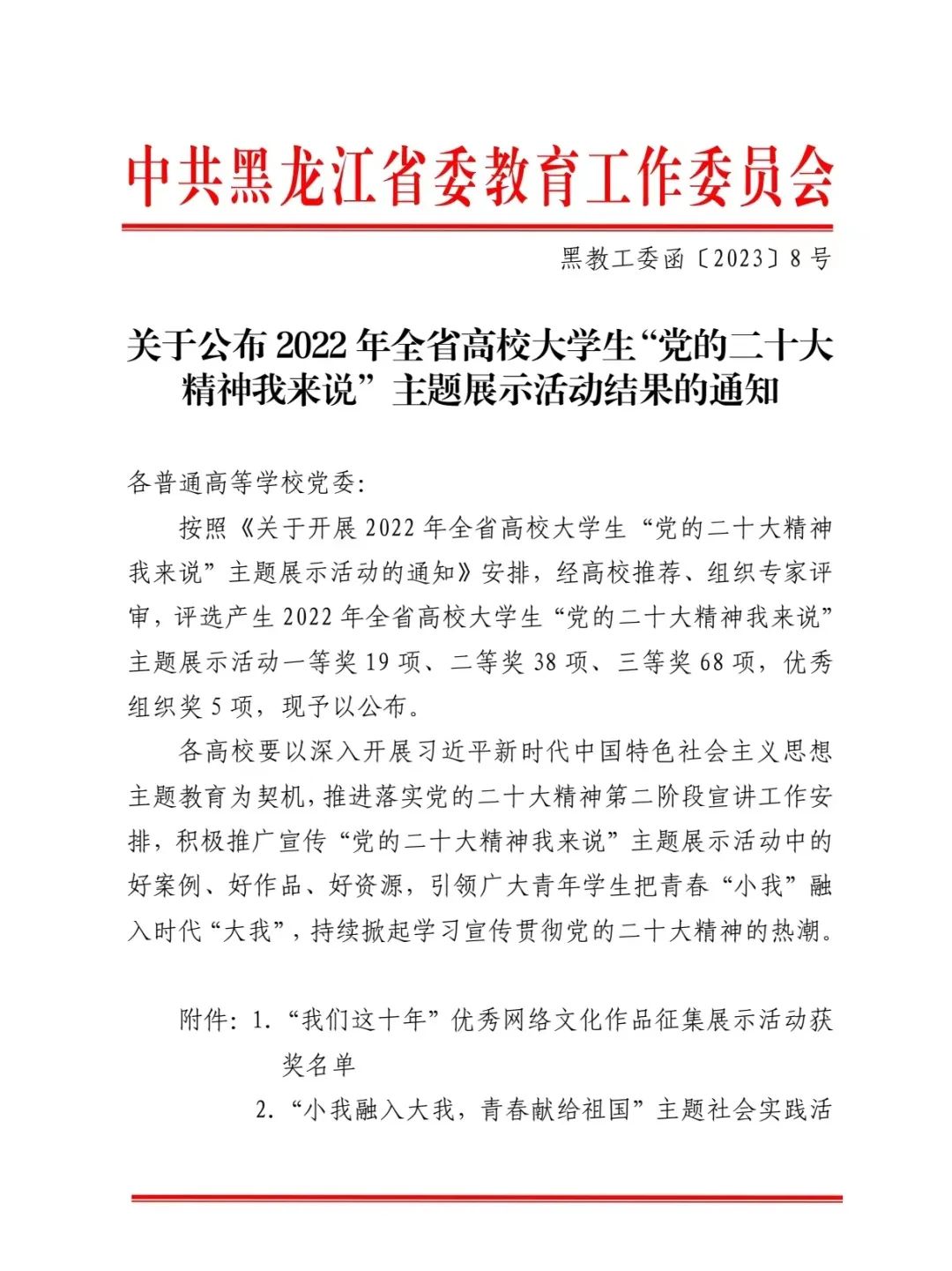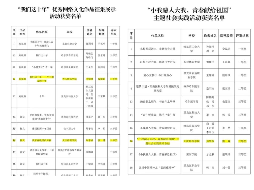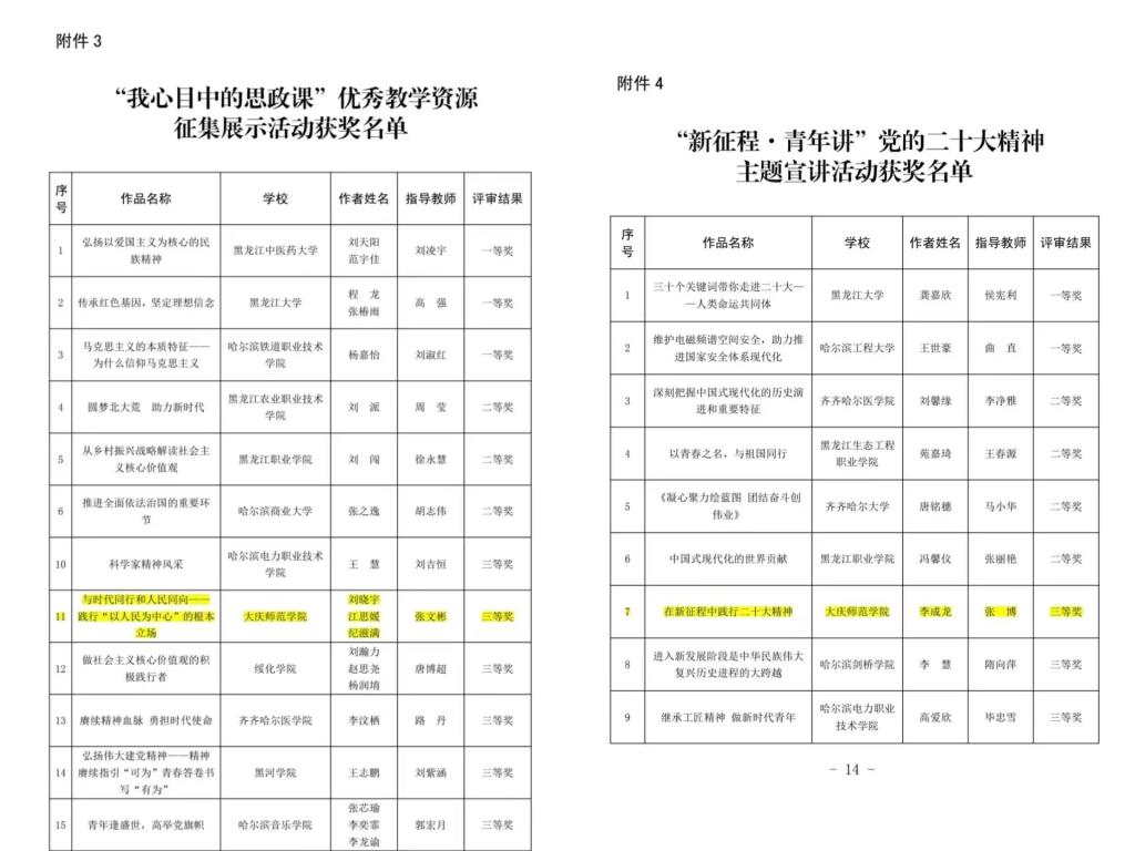 近日,黑龙江省委教育工委公布了2022年全省高校老员工“党的二十大精神我来说”主题展示活动获奖名单,公司永利yl23411报送的参赛作品在众多作品中脱颖而出,荣获三等奖3项。