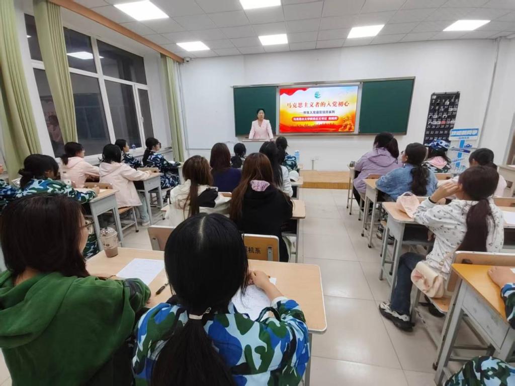 宣讲中,赵桂英书记以“马克思主义创立者的选择”、“中共创始人的抉择”、“伟大新时代领航者的初心”、“当代庆师学子的信仰”四个维度展开分享。她结合党的百年奋斗历程与新时代发展成就,用鲜活的历史案例、详实的数据和身边优秀党员的事迹,生动诠释了“中国共产党为什么能”,帮助新生深刻理解党的性质、宗旨与使命;其次,针对思想政治教育专业特色,她强调“专业学习与理想信念相融合”的重要性,鼓励新生以理论武装头脑,在研读马克思主义经典著作中坚定信仰、明晰方向;最后,她对新生提出殷切期望——希望大家以“严标准”要求自己,在学习上刻苦钻研、在实践中锤炼品格,主动向党组织靠拢,争取早日成为一名合格的共产党员。